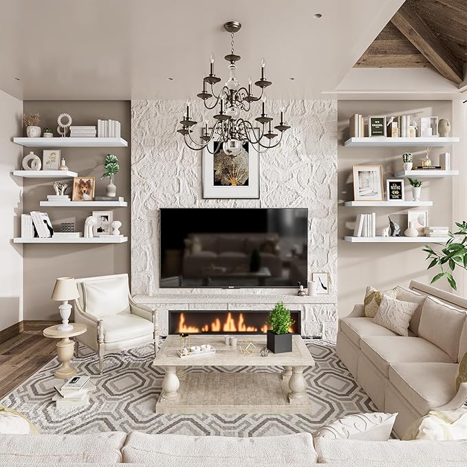 - Extra Deep Floating Shelves: Measuring 11.6” D x 35.4” W x 1.5” H, these shelves are crafted for maximum depth and durability. The spacious 12” depth gives you plenty of room for stylish display, organized storage, and decorative accents. Perfectly suited for your bathroom, kitchen, or living room, they enhance both function and flair in any space!