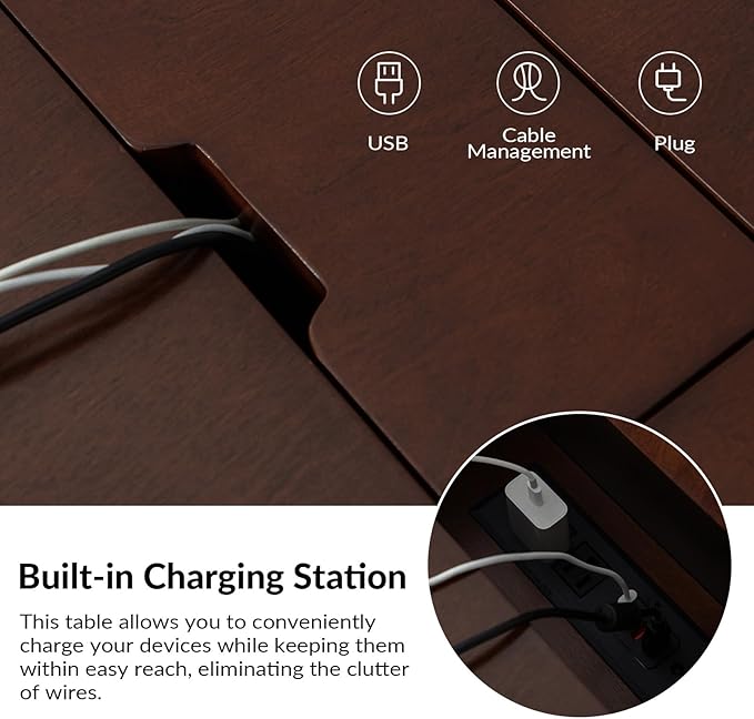 - Built-In Charging Station – Features USB ports and power outlets to easily charge your devices while keeping your tabletop neat and clutter-free.