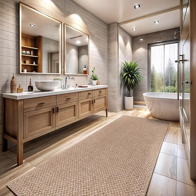- [ EASY JUTE RUG ] Experience the enchantment of a resilient rug mimicking the appearance of natural jute, courtesy of our latest Easy-Jute rugs. (Jute-free in reality) Crafted from secure polypropylene, these rugs are resistant to cracking, ensuring they remain free from scratches, shedding, or unraveling over time.