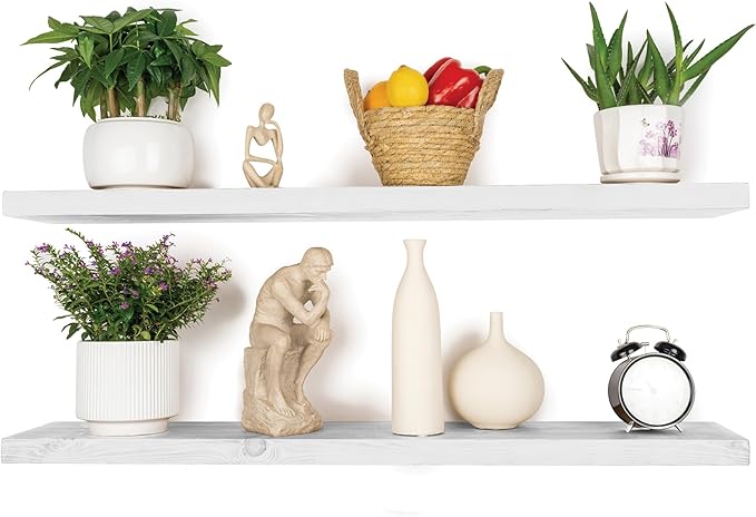 BGMG Floating Shelves for Wall 48 inch Long,Rustic Solid Wooden Deep Wall Shelves for Bathroom Living Room Bedroom Kitchen Farmhouse Set of 2-48x6.7x1.25 inch- White