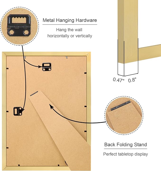 - Multiple Display:10 by 14 photo frames come with hanging hardware, which can be hung on the wall, or displayed on the tabletop through the stand