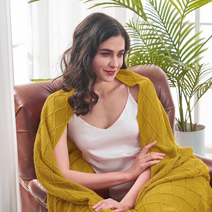 - 【GIFT IDEAS】: Special knitted diamond patterns add a unique accent to your room and people draping it as a shawl. Very suitable for tasteful homeowners. Throw blanket for women, classic but not too tacky as a housewarming gift. Tips: Due to different lighting, display settings, or resolutions, the difference in color happens. We are dying to show the color. To do so, one of the images shows the color difference in different lighting. Hope these instructions would help you to buy a throw.