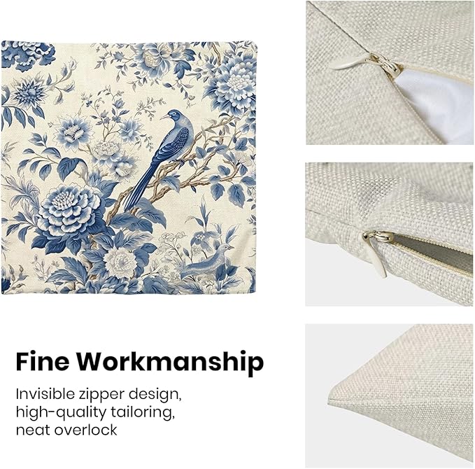 - 【Square Pillow Covers Size】 Chinoiserie flower birds pillow case set includes 2 pcs of farmhouse couch pillow covers (NO Pillow). Home decor farmhouse pillow covers measures 20x20 inch/ 50x50 cm. All the floral decor throw pillow covers have a hidden zipper. It is easy to insert or remove the pillow core to replace the spring pillowcase. Easy to clean and wash, sturdy and not easy to damage.