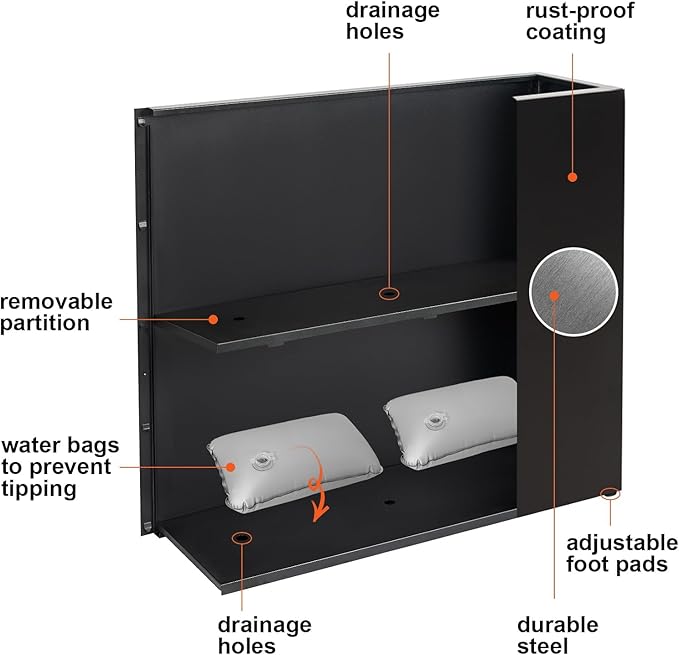- Anti-Tipping Stability: Our flower box comes with two included water bags to enhance stability by adding weight to the base and can withstand a maximum tilting force of 30bf. Perfect for when using lightweight decorations