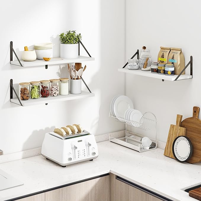 Heimlove 24 Inches White Floating Shelves,8 Inches Deep Wall Bookshelf Mounted Display&Storage Wood Wall Shelves for Kitchen Bathroom Laundry Living Room,Set of 3
