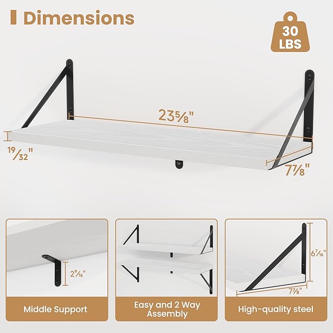- 【Practical Wall Bookshelf】Our 23.6"W x 8"D floating shelves are your good helpers if you need extra storage space,or want to add green decorations-small indoor plants,photo frames,collection books. These floating bookshelves can free up floor and counter space,making bedrooms,living rooms and offices more tidy.