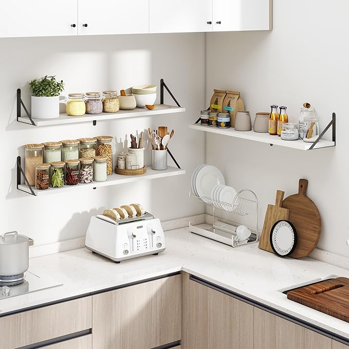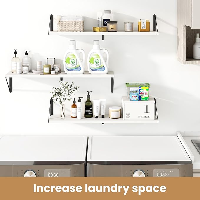 Heimlove 36 Inch White Floating Bookshelves Set of 3,Heavy Duty Wall Mounted Bookshelves,Wall Bookshelf for Living Room,Bedroom,Kitchen,Laundry Room Storage & Decor