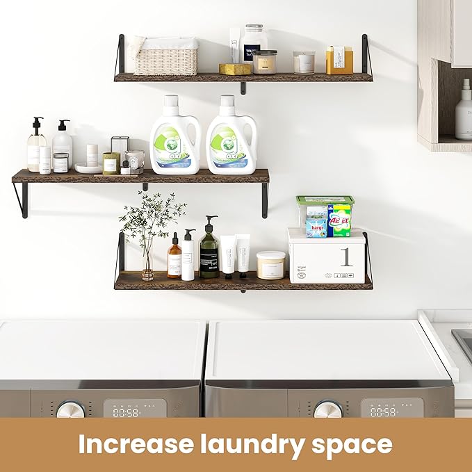 Heimlove 36 Inch Floating Bookshelves Set of 3,Heavy Duty Wall Mounted Bookshelves,Rustic Brown Wall Bookshelf for Living Room,Bedroom,Kitchen,Laundry Room Storage & Decor