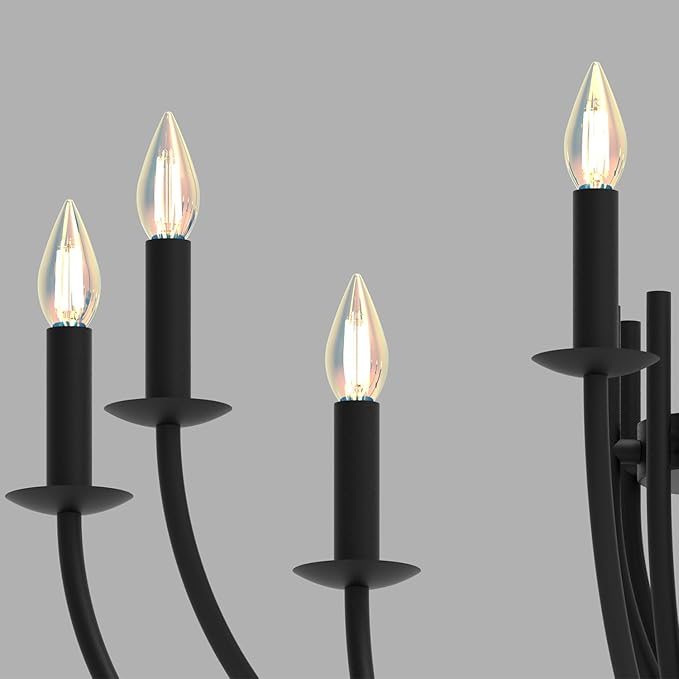 - 【LED E12 Bulbs】 The large black chandelier light use LED E12 bulbs. The LED E12 bulbs are easy to install.