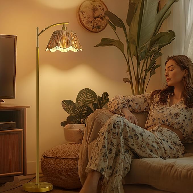 - Bohemian style to your home decor-This boho floor lamp boasts a handwoven rattan shade that enhances your home with natural charm and texture. The gold metal pole and base provide a sleek, modern contrast, making it a perfect blend of rustic charm and contemporary style. Ideal for living rooms, bedrooms, or offices, this lamp enhances any space with its timeless design.