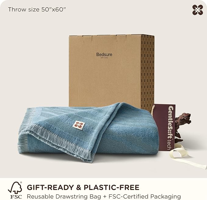 Bedsure 100% Cotton Throw Blanket for Couch - Chenille Woven Textured Blanket Gifts for Women, Cozy and Soft for All Seasons, Home Decor Boho Throw for Bed, Sofa, Tapestry, 50x60 Inches