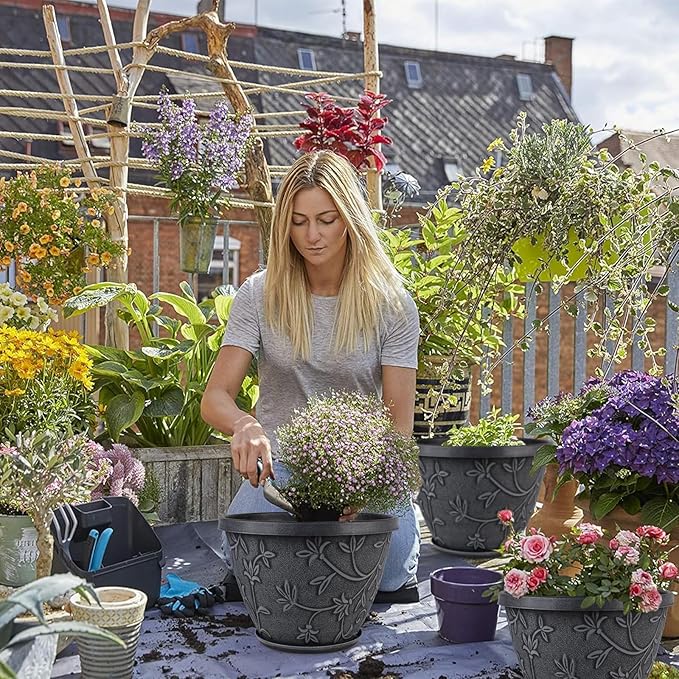 - 【Add Color To Your Garden】Planters for outdoor plants pots available in 8/10/12/16 inch with modern design, bring out the beauty of your beloved plants and flowers whether they are lying flat or hanging up. Great for decorate windowsill, desktop, shelf, balcony, living room, kitchen, garden, office, etc. Choose our flower pots right now. Enjoy the planting process and the beauty these plant pots will hold!