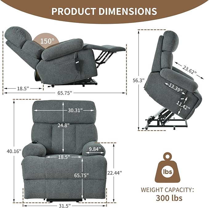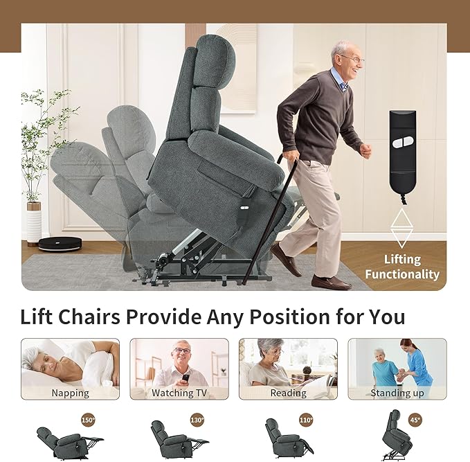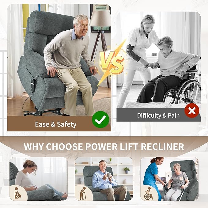 - Electric Lift Mechanism for Easy Mobility: Designed with your comfort and convenience in mind, our Lift Recliner features a smooth electric lift mechanism that effortlessly raises the chair to assist you in standing. This feature is particularly beneficial for the elderly or those with limited mobility, reducing strain on joints and muscles.