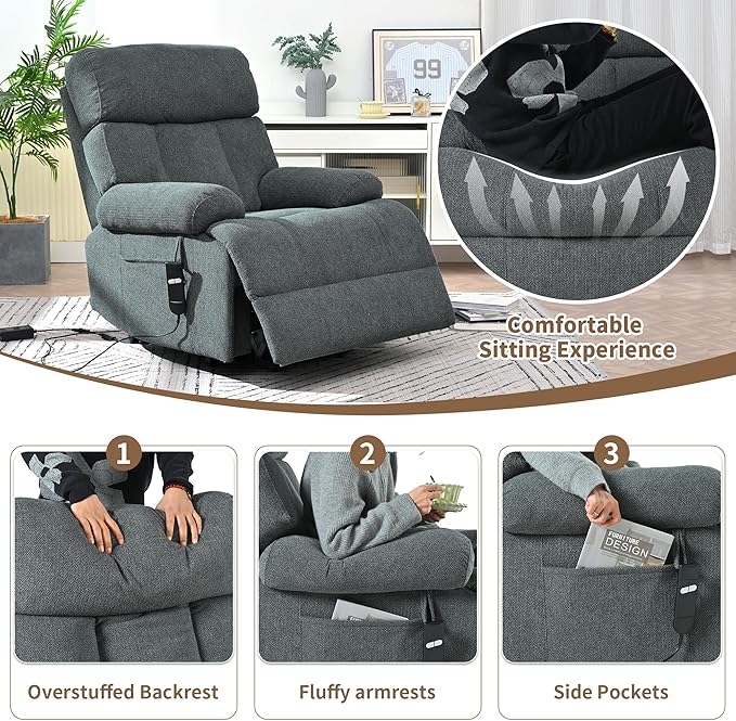 Power Lift Chair Recliners for Elderly, Overstuffed Electric Lift Recliner Chair with Widened Footrest Side Packets for Living Room Bedroom