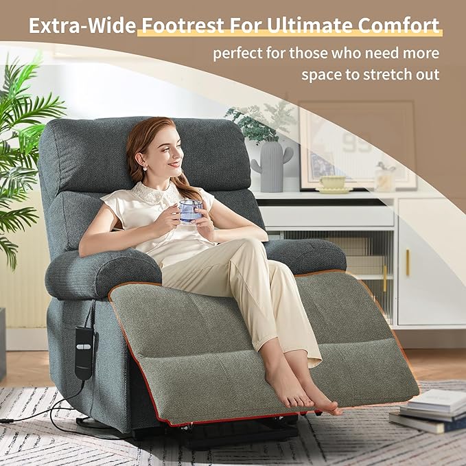 - Wide Footrest for Ultimate Comfort: Experience unparalleled relaxation with our Lift Recliner featuring an extra-wide footrest, perfect for those who need more space to stretch out. The spacious design ensures comfort for users of all sizes, making it ideal for long hours of lounging.