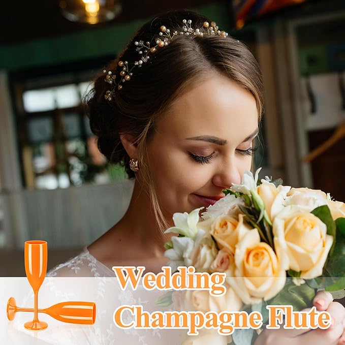 XUWAIDSGN Acrylic Champagne Flutes Toasting Glasses Unbreakable Mimosa Bar Reusable Wine Glasses Vintage Champagne Flutes Stemmed Drinking Cups 5.4 OZ for Christmas Birthday (24, Orange)