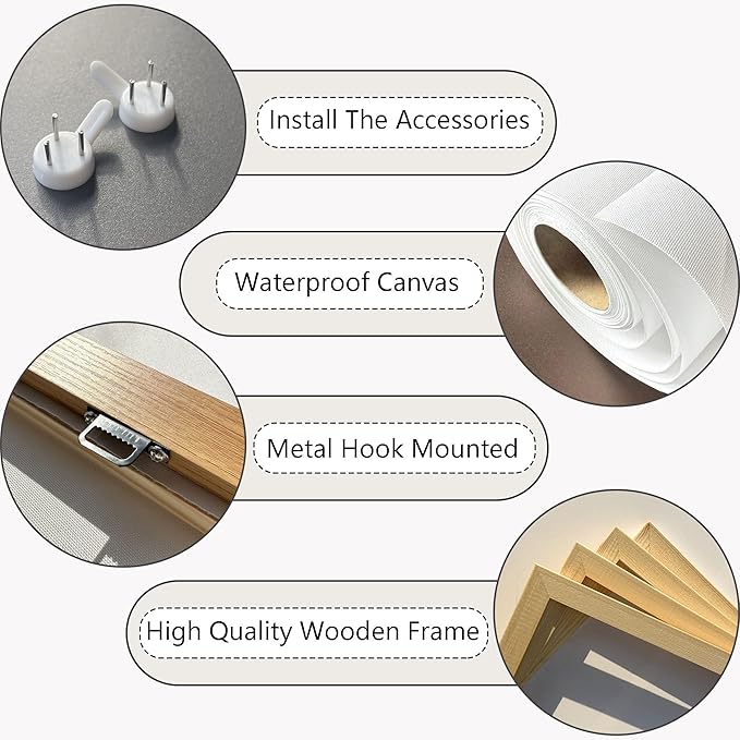 - Wall Art for Living Room:Stretched over a solid wood frame, it comes with pre-installed hooks for quick and effortless hanging.