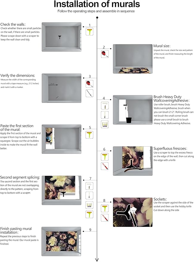 - Warm tip: This mural is not peel and stick, you need to buy your own glue, it is recommended to use Heavy Duty Wallcovering Adhesive.