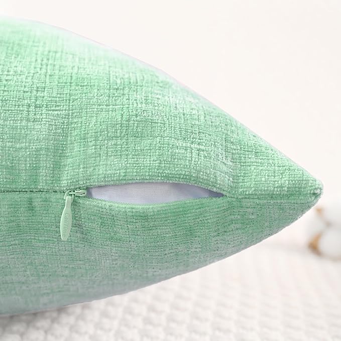 CaliTime Throw Pillow Covers Decorative 18 X 18 Inches Pack of 4 Cozy Chenille Cushion Cases for Couch Sofa Bed Living Room Home Grey Green