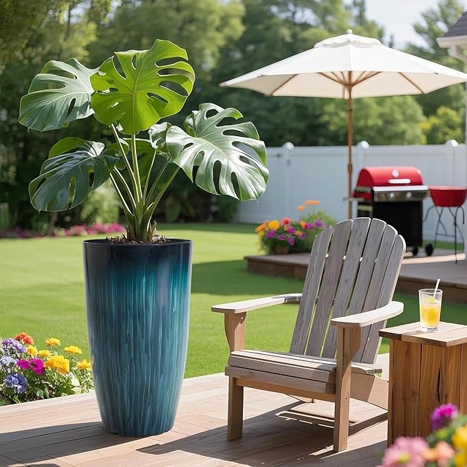 - Tall & Decorative Design: At 23.5 inches tall and 14 inch diameter, these planters create an impressive display for entryways, porches, decks, or balconies — perfect for tall plants or floral arrangements