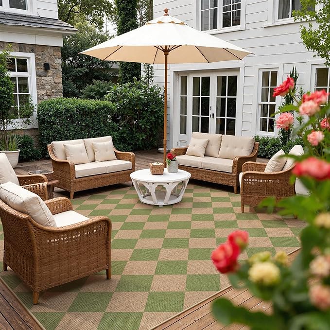 - Modern Checkered Rug: Showcasing checkerboard in green and natural colors, purposely distressed and faded geometric checkerboard design, it makes a great option for anchoring modern farmhouse aesthetics