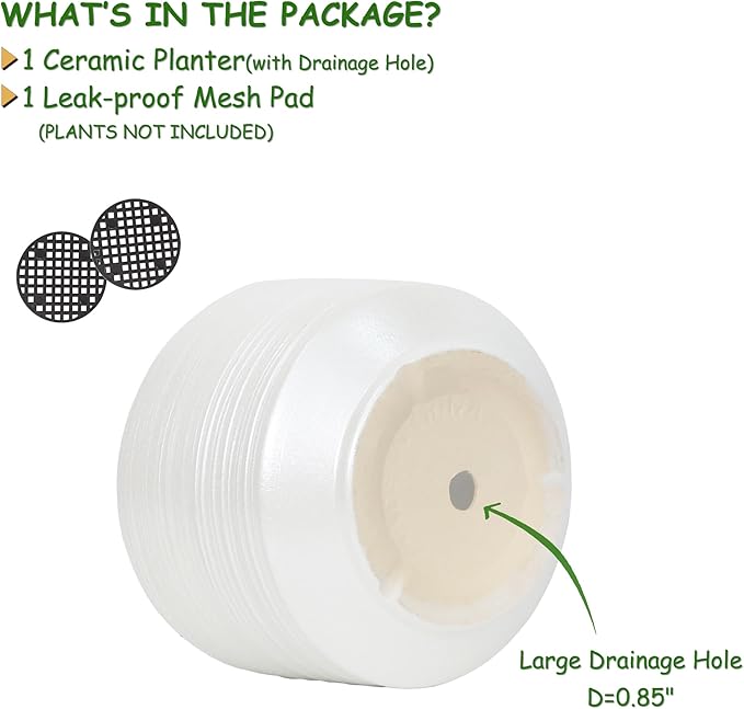 - 【Drainage Hole for Indoor & Outdoor Use】:Built-in drainage hole helps prevent root rot and supports healthy growth in large houseplants. Works as both an indoor ceramic planter and an outdoor pot for patio, garden, or balcony setups.