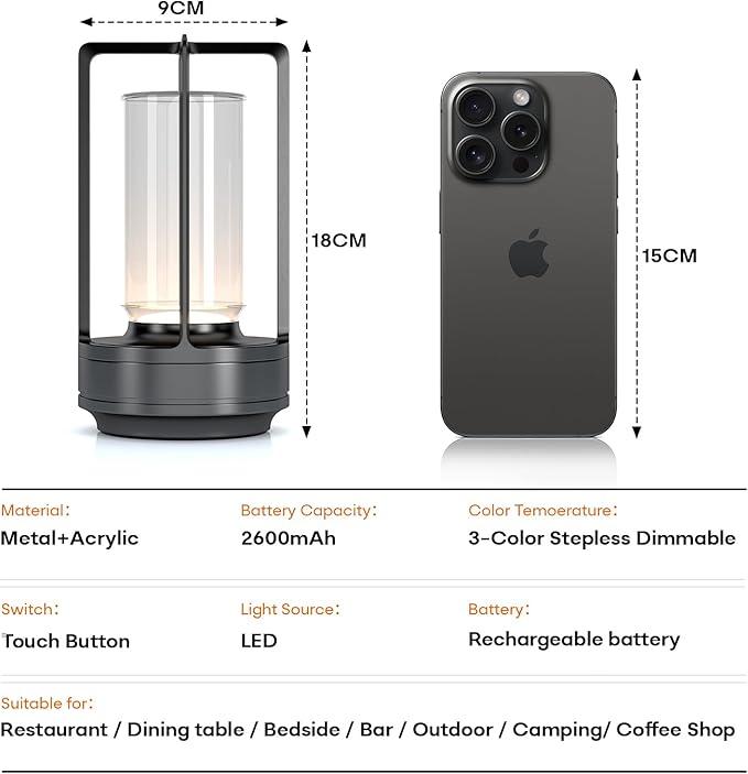 - π [ A perfect gift idea ]: Our touch light lamp can match a variety of scenes and styles while making a great gift. It can be used as an ambient light for Thanksgiving, Christmas and birthday parties. The rechargeable cordless led table lamp is suitable for bedroom, bedside table, office, restaurant, cafe, bar, hotel, outdoor patio lighting, etc.
