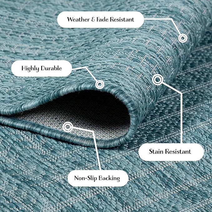 Adiva Rugs Outdoor Indoor Area Rug, Weather Resistant, Easy to Clean, Stain Resistant Floor Mat for Dining Room, Backyard, Deck, Patio (Aqua Weiss, 10' x 14')