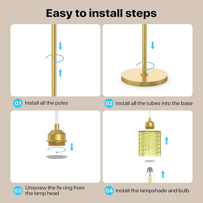 - Ready - to - Use Convenience:This crystal floor lamp comes with 3 matching E26 bulbs, saving you the trouble of extra purchases. Simply install it right after receiving the lamp and start enjoying it quickly β so you can effortlessly brighten up your daily life