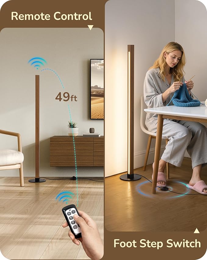 - [Remote & Foot Switch] Use the included remote control (up to 49ft range) for convenient access to this led corner lamp, or operate via the foot switchβtap to ON-2700K/4500K/6000K-OFF, or long press for stepless dimming