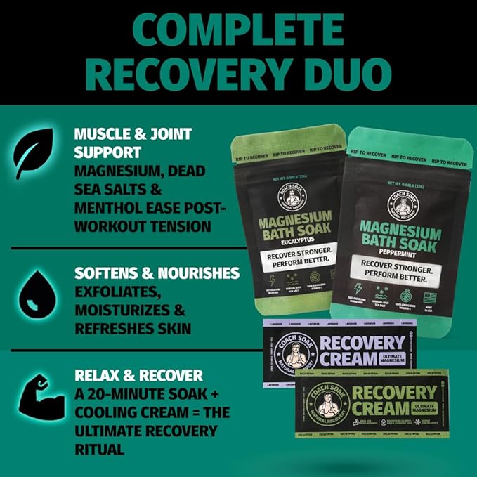 - Coach Soak Experience: Immerse yourself in the rejuvenating effects of Coach Soak's Magnesium Flakes & Lotion Trial Pack, designed for athletes seeking effective muscle support. Enriched with magnesium bath flakes mint, each sachet revitalizes and refreshes