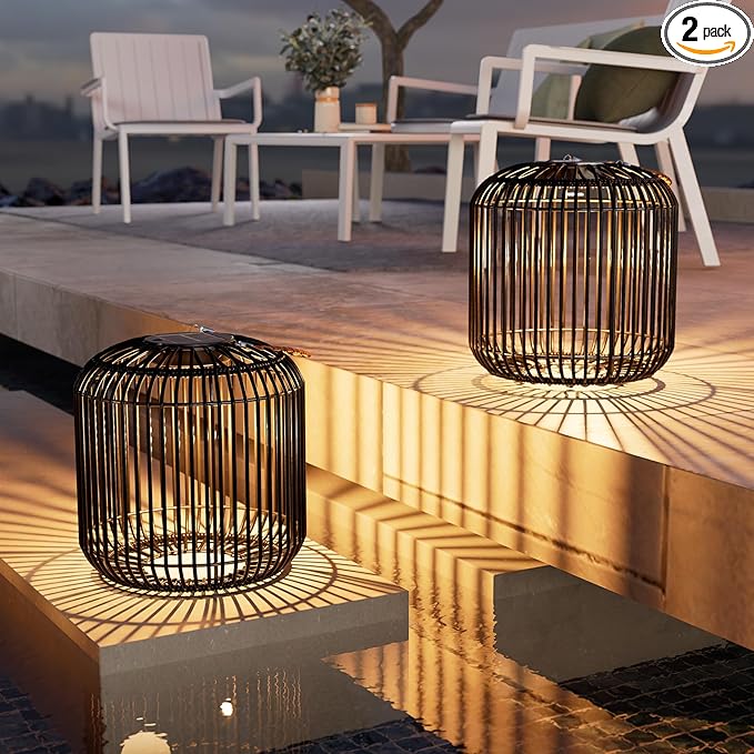 - LOW-MAINTENANCE: Constructed with a powder-coated steel and weather-resistant wicker, this lights withstands IP54-rated rain, wind, and sun exposure. Non-slip base ensures stability guarantee lasting beauty season after season