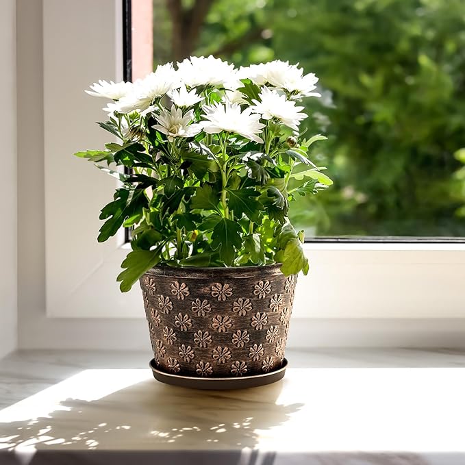 - 【Stylish Look For Decorative】We design plant pots indoor with a beautiful embossed flower pattern on the surface, elegant appearance making it ideal for home decor, garden decor and office decor. Enhance your space with these retro planters and watch your plants flourish.