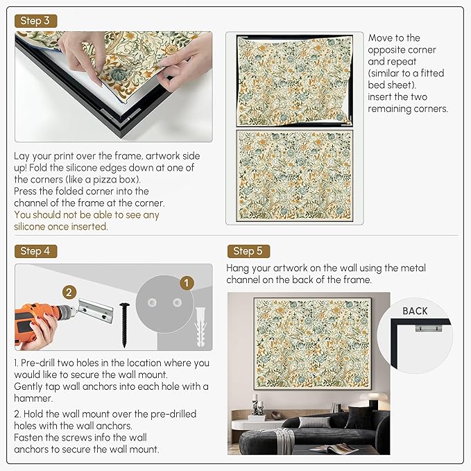 - Assembly Required: The artwork comes with the frame components unassembled. Don’t worry — setup is straightforward and tool-friendly. For best results and accurate alignment, we recommend two people to ensure a smooth assembly and a stable, secure wall mount.