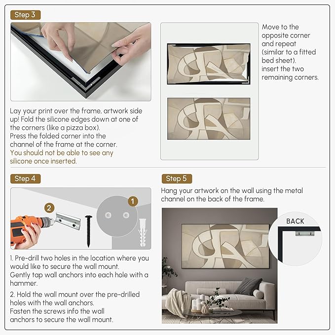 - Assembly Required: The artwork comes with the frame components unassembled. Don’t worry — setup is straightforward and tool-friendly. For best results and accurate alignment, we recommend two people to ensure a smooth assembly and a stable, secure wall mount.
