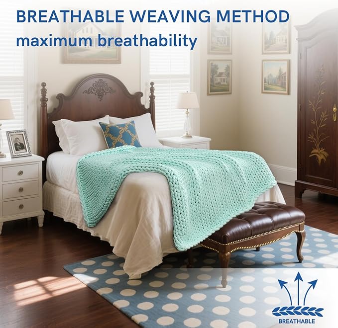 - [Cooling & Ventilated] Free airflow through loops on the blanket keeps the blanket breathable and high ventilation. It doesn't retain much heat when placed on or around you, but it does provide a soothing, cooling and relaxing hugging sensation