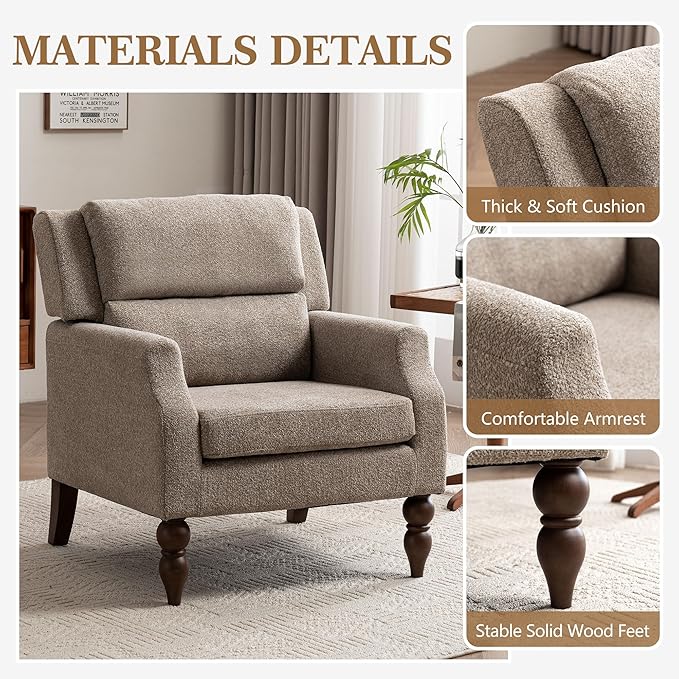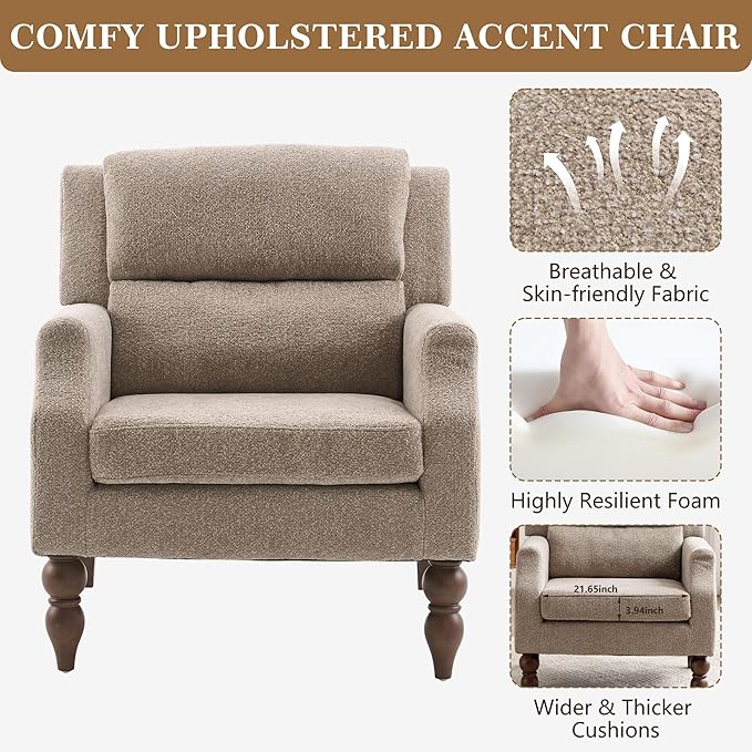 - Wider & Larger Accent Chair - This comfy armchair is ergonomically designed to provide a comfortable experience. The high backrest(17.3β W) and widened seat (21.6β W) with thick foam padding provide optimal lumbar support and cloud-like softnessβideal for reading, working, or relaxing. Multi-Color Options: Match your existing furniture with 4 earthy tones