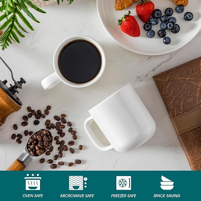- 【Warm Ivory Glaze for Cozy Elegance】: Unlike bright white mugs, our warm ivory hue adds cozy elegance to your coffee ritual. The natural ivory color comes from iron-rich clay, with no artificial whitening chemicals—making these white coffee mugs both stylish and safe.