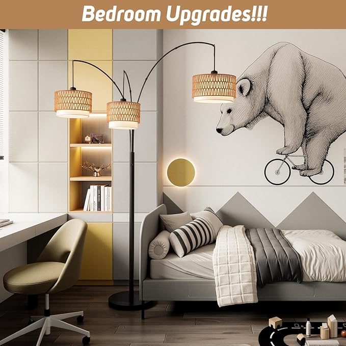 - 【Flexible Design】Our boho floor lamps for living room are designed to cater to any space with their 3 lamp floor lamp rattan structure. The adjustable arms provide focused lighting for a cozy reading corner or broad illumination for social gatherings. This coastal floor lamps for living room adapts to the multifunctionality of your home with refinement and ease