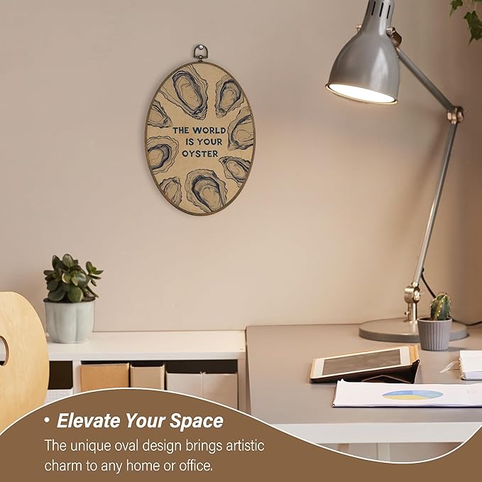 XBBMGG Vintage Oyster Wall Art Decor, Inspirational Retro Beach Oval Wall Hanging Decor, Nautical Ocean The World Is Your Oyster Framed Canvas Prints for Living Room Bathroom Decorations, 8.6 x 11.4 inch