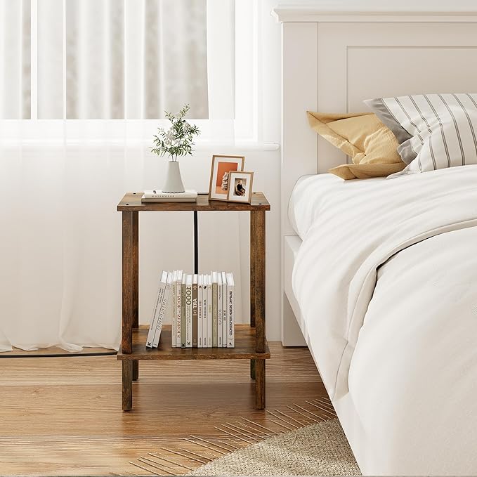 TUTOTAK End Table with Charging Station, Set of 2, Small Side Table with Outlets, Nightstand Bedside Table, 2-Tier Storage Shelf for Small Space, Living Room, Bedroom Brown TB01BB041C