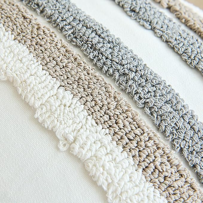 HOdo Home 18x18 Throw Pillow Covers, 2PCS Tufted Boho Jacquard Pillow Covers,Farmhouse Decorative Pillow Cover,Pillow Cases for Couch Sofa Bed Stylish Decor, Simple Textured Cushion Sham