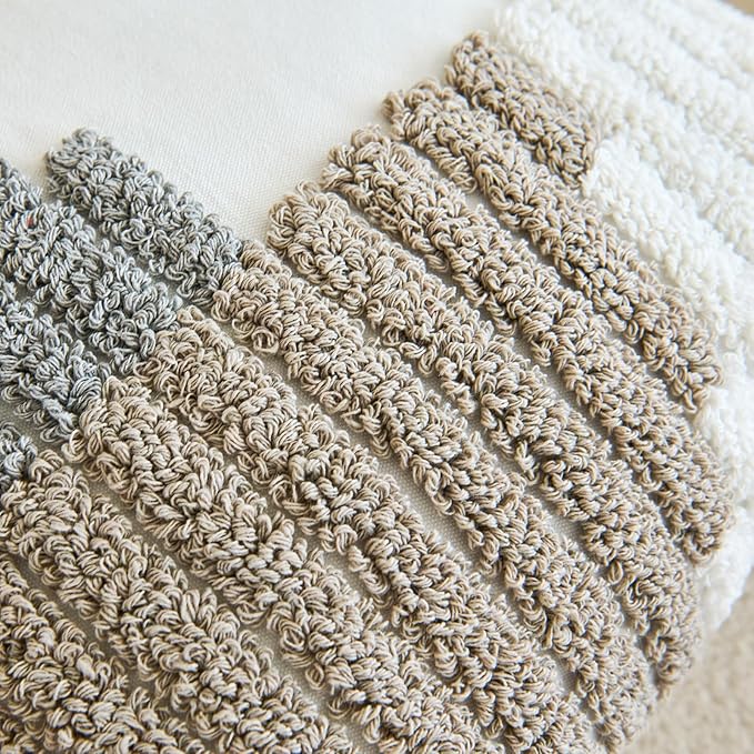 HOdo Home 18x18 Throw Pillow Covers, 2PCS Tufted Boho Jacquard Pillow Covers,Farmhouse Decorative Pillow Cover,Pillow Cases for Couch Sofa Bed Stylish Decor, Simple Textured Cushion Sham