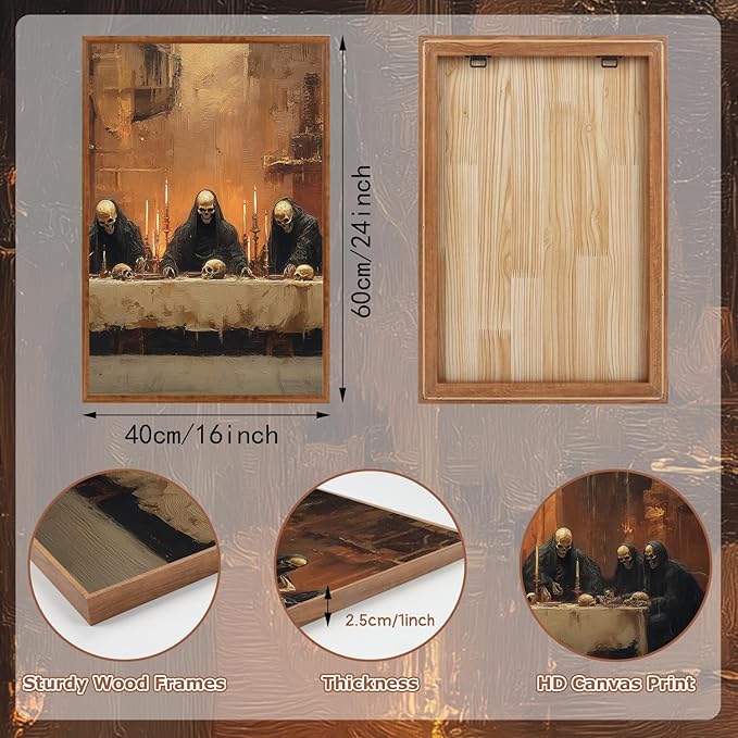 - 【Skeleton Canvas Wall Art】 This horror Halloween wall painting features nine skeletons dining around a table,inspired by the painting "The Last Supper".It is both humorous and creative.Hang it in your indoor space and it will bring you endless inspiration and fun