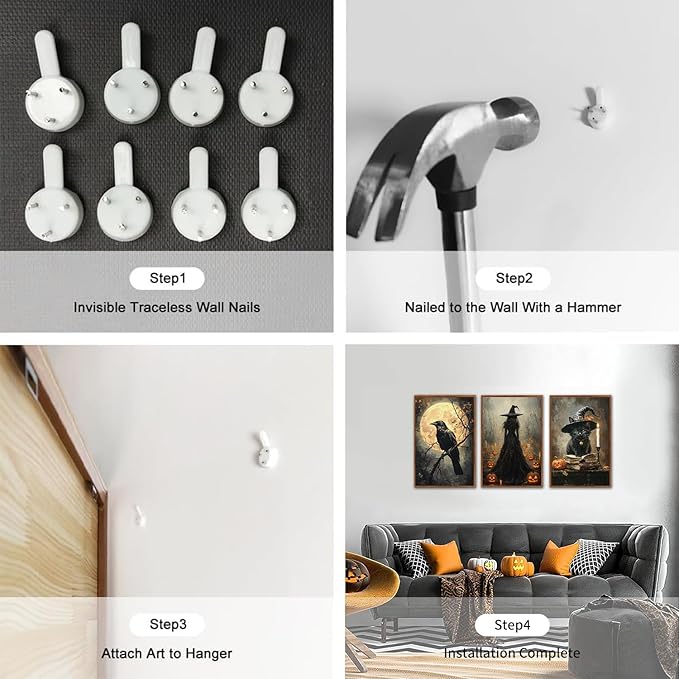 - 【Easy to Hang】This set of Gothic Halloween wall decorations measures 24X16 inches (60X40cm) and comes with a photo frame with hangers, making it easy to hang.It has a built-in hanging set.Just fix the nails to the wall and then hang the wall paintings