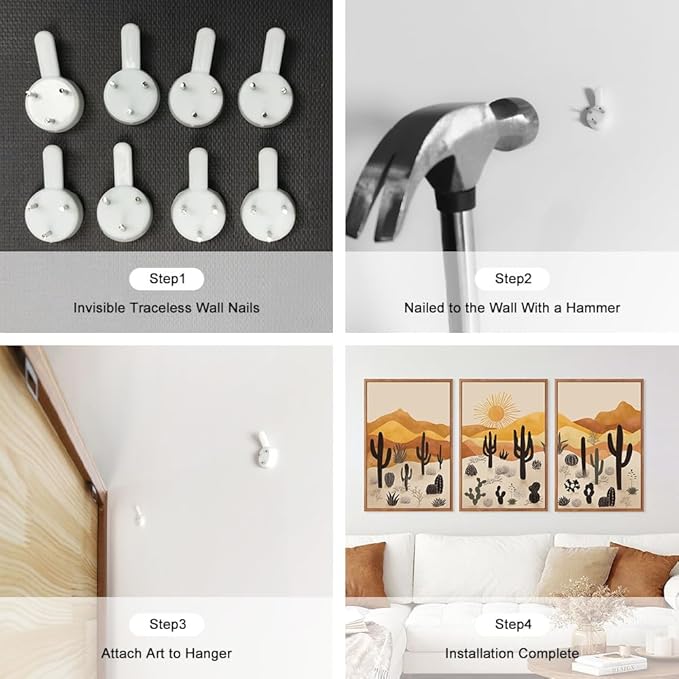- 【Easy To Hang】Each cactus wall painting measures 16X24 inches (40X60 cm) and is wrapped in a PS frame with a hanging piece,making it easy to hang.Just use the built-in nails to fix it in the appropriate position on the wall