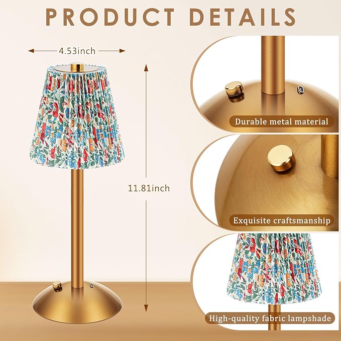 - Retro Floral Lamp Modeling: the portable table lamp is designed with retro floral lamp modeling, showing taste, simple outline and circular design, fashionable and stylish, not outdated, easy to match with home decoration style, and is an indispensable atmosphere lamp for your romantic candlelight dinner night, suitable for indoor and outdoor use