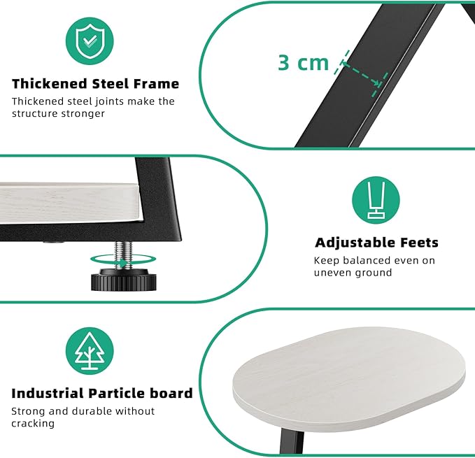 - 【Spacious Surface & Extra Storage】Unlike typical round side tables, this oval side table provides an expansive surface that comfortably accommodates a laptop, books, or other everyday essentials. The larger desktop offers a clutter-free space, helping you keep your items organized and within easy reach. It's a great solution for those who need both a functional workspace and a stylish addition to your home décor.