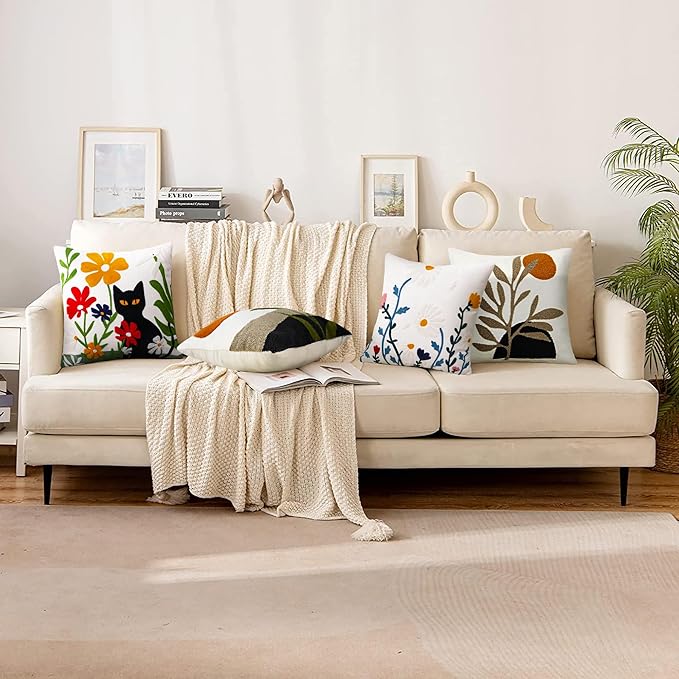 - 【Versatile Decor Accent】Our Decorative Pillow covers with Cute Cat and Wildflower Motifs can Easily Change the Arrangement of Your Sofa, Armchair, and Bed, Bring a Stylish and Beautiful Visual Enjoyment to Your Living Room and Bedroom and Impress your Guests at the Same Time, these Decorative Pillowcases Complement a Wide Range of Interior Styles Such as Modern, Bohemian, Vintage, and Industrial. The Unique Design Pattern and cotton canvas Texture Will give your Home a New Look