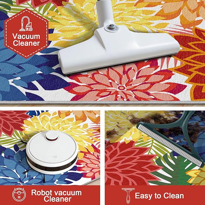 - Floral Pattern Design: Brighten up your indoor space with our stunning floral pattern washable rug, perfect for porch, living room, or bedroom, adding a touch of elegance and charm to anywhere.